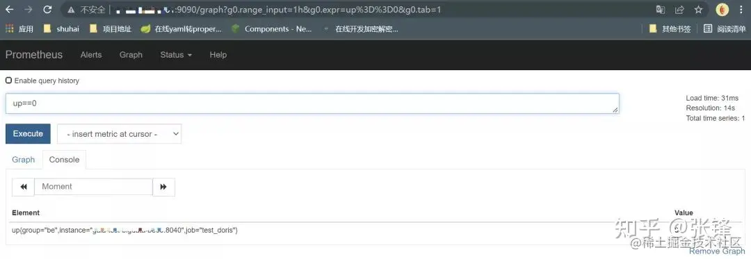 expr: up {group="fe", job="pro-doris"} == 0