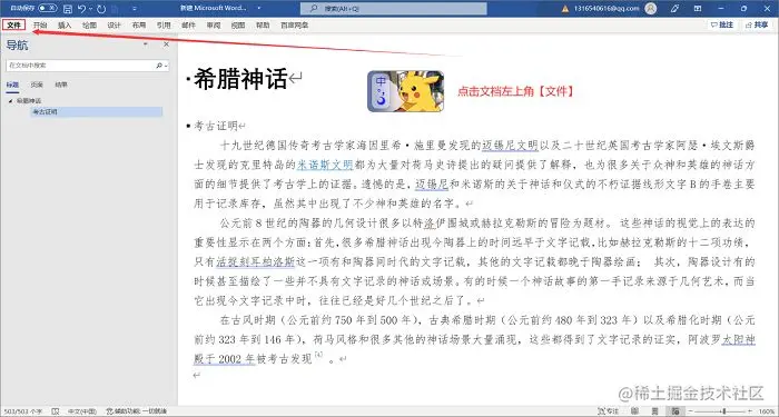 第1步:打开word文档后,点击左上角的【文件】;