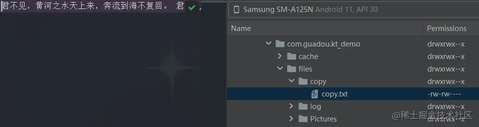 val inFile = File(commContext().filesDir.absolutePath + "/haha.txt")