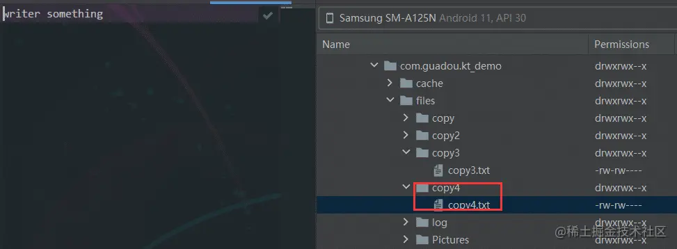 val newFile = File(context.getExternalFilesDir("copy4"), "copy4.txt")