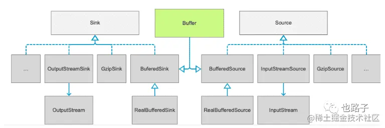 Skin Source Buffer 很多概率,第一次接触Okio的就很懵逼,和InputStream OutPutStream 怎么完全不一样了,不懂他们的意思,这里贴一张网图大家就懂了: