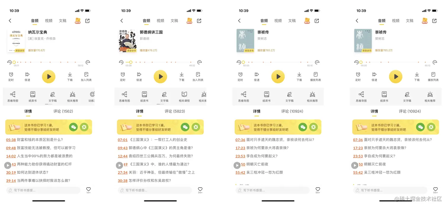但是后面逻辑思维的思路开始做平台化。后面得到就引入了非常多的知名作者,现在已经基本上变成了一个平台,很多作者都可以去用音频或者视频的方式去入住。