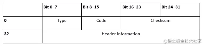 - 类型Type:ICMP 中的每条消息都包含唯一的类型并放置在此字段中,其中一个常见的字段称为 echo request,类型为 8,此字段为 8 位,因此共有 256 种消息类型。
