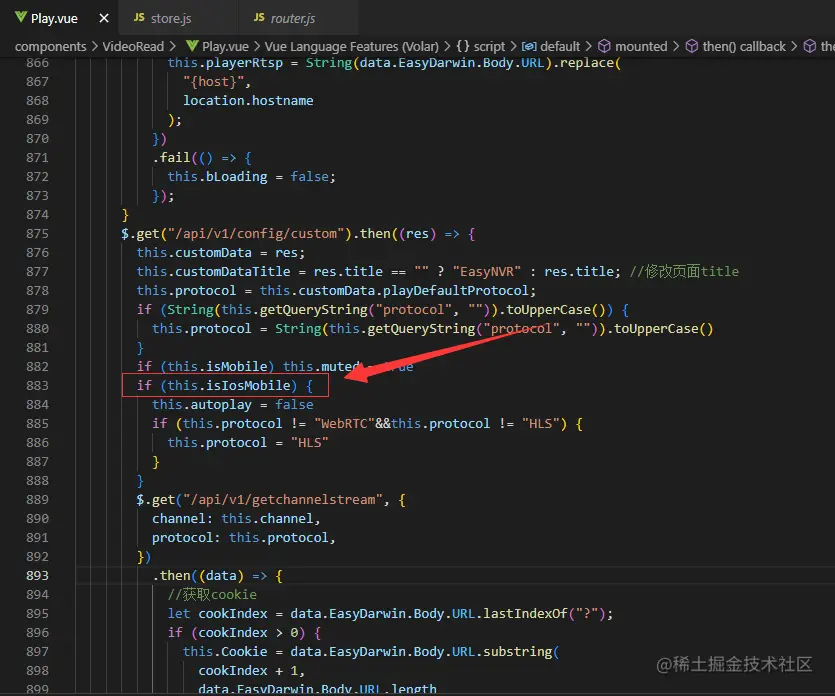 所以,这里需要在起播时加入判断,如果为iOS端,且默认协议不是WebRTC或HLS这两种协议,那就默认赋值为HLS协议,以免用户无法观看到视频。