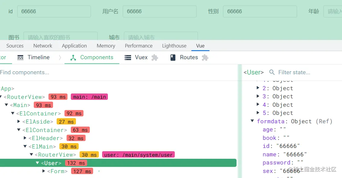 先验证控制台打印是否实现双向绑定结果,form组件改变emit触发修改userformdata