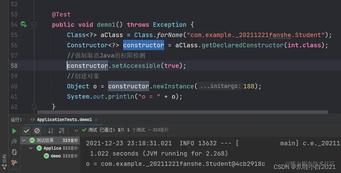 * 在Class类中的getConstructor 方法中接受的参数表示的是需要反射的某个