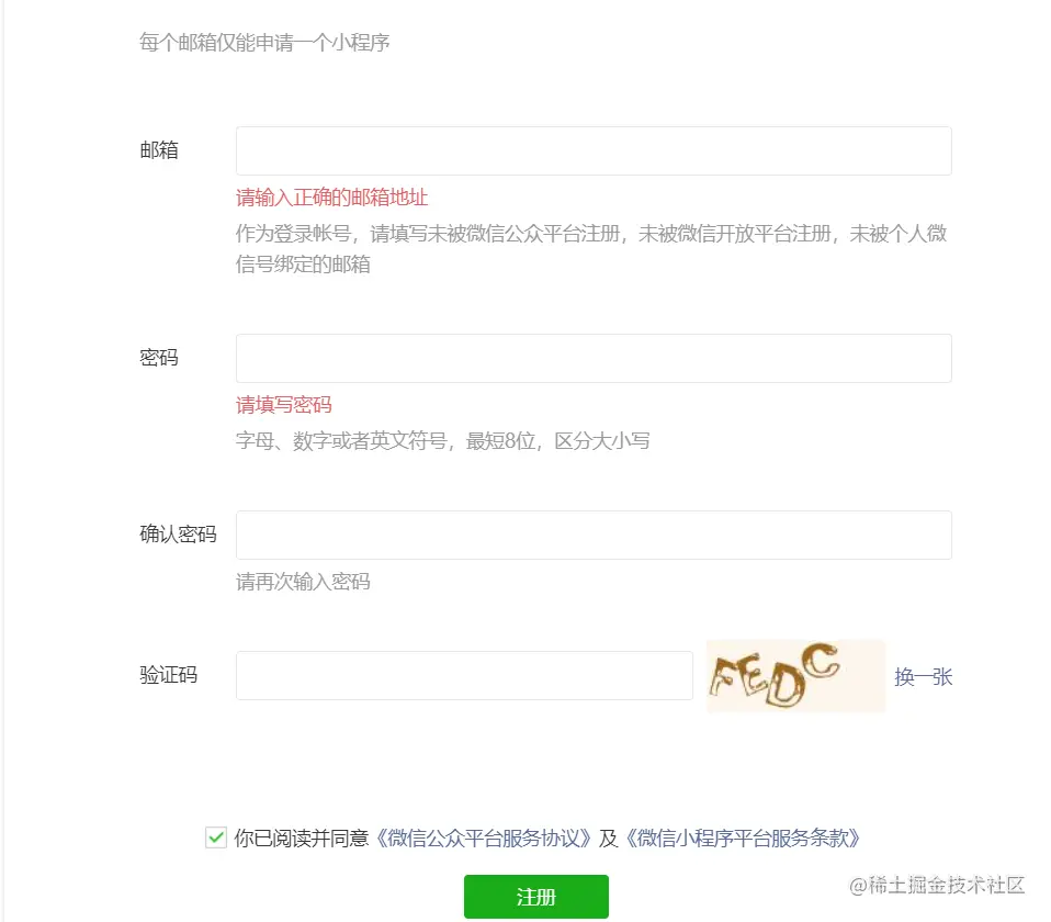 根据指引填写信息和提交相应的资料,就可以拥有自己的小程序帐号。