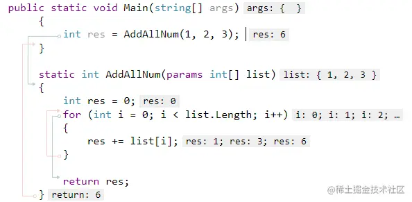 一般的当一个方法被调用时,会希望调用者传入与方法相同类型和数量的参数,除非存在有默认值参数(不传递该参数则使用默认值)。param修饰符可以为方法指定参数数量可变的特性,传递方法的参数由编译器更改为临时数组中的元素。下面两种写法都可以