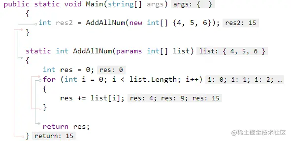 为什么不直接传递一个数组给AddAllNum方法,而是给方法参数加params呢?我的理解是,当方法在不同的调用场景下,参数数量、类型都不一样,不同参数类型之间如果形成一个数组的在业务上会难以理解,而且当有params修饰符时,可以一个参数都不传