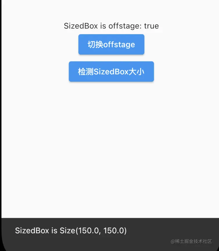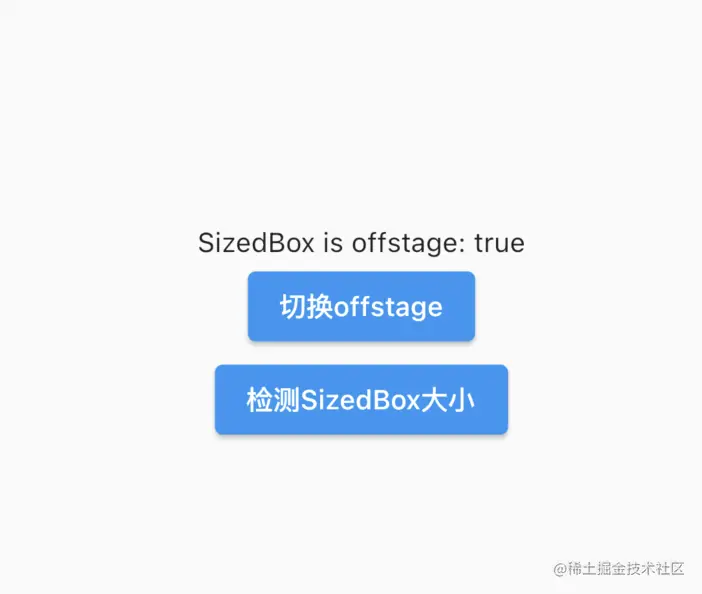 另外,我们还需要一个ElevatedButton来检测Offstage的大小,看看在_offstage发生变化的时候,Offstage到底会不会发生变化。