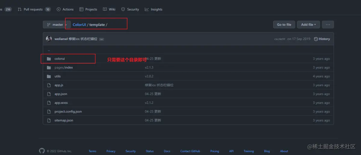 这里我们不需要使用template,我们直接复制/template/colorui目录到项目根目录。