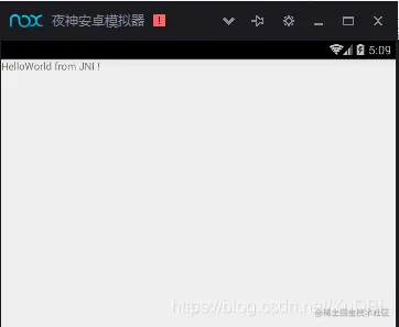在手机界面中可以看到显示来自com_ndk_test_JniClient.c 文件中的“HelloWorld from JNI ! "了。