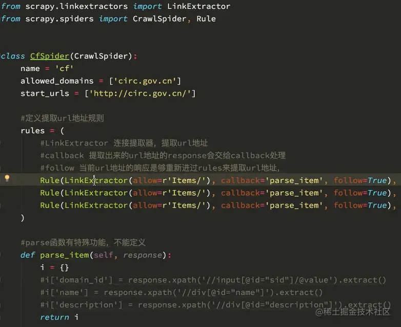 Rule(LinkExtractor(allow=r'.*/p/[0-9a-zA-Z]{12}'),callback='parse_aritcle'),