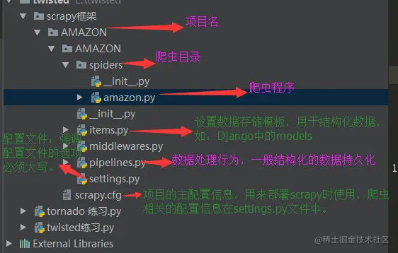 参考: 使用twisted模拟出Scrapy的基本功能: www.cnblogs.com/ssyfj/p/924… scrapy源码解析前戏,Twisted框架学习笔记: www.jianshu.com/p/dc588fe9a…