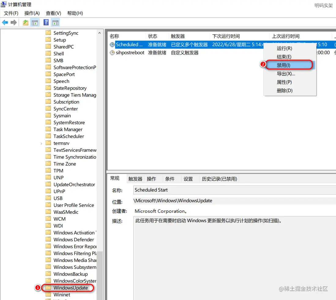 二、关闭任务计划程序“windows update”
