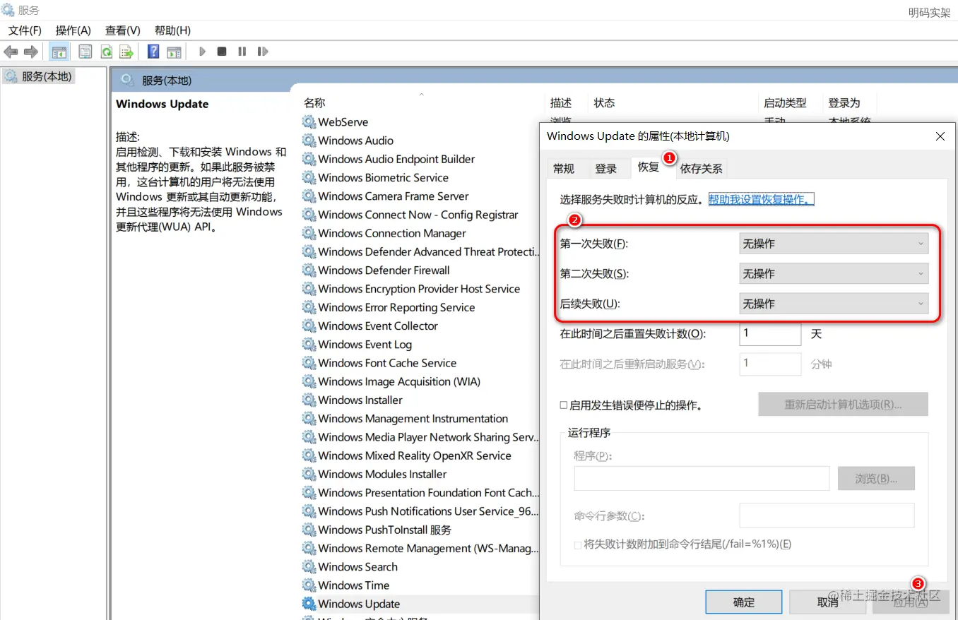 2)、windows update的恢复标签页设置失败恢复全部为无操作