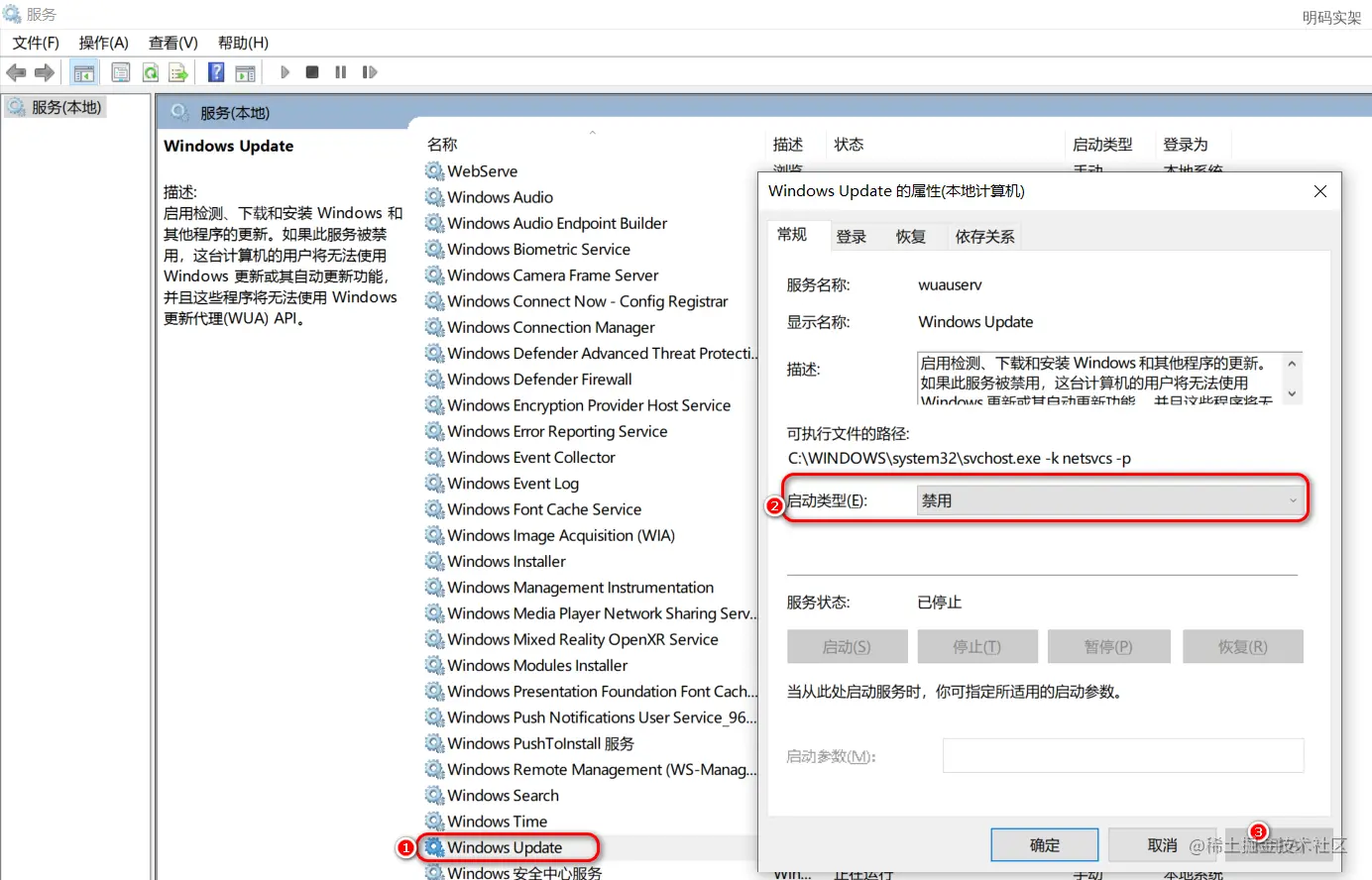 一、关闭系统服务“windows update”