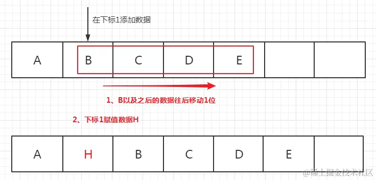 1.5倍,将数组赋值给长度为原来数组1.5倍的新数组。 - 在数组的最末尾