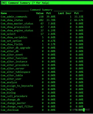 - 第二个Pct:与上一次抓取状态变量值相比,本次抓取增加的值在所有command状态变量增加值中的占比