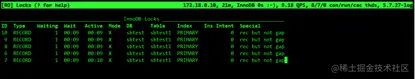 - Special:特殊信息,对锁进行描述,例如:rec but not gap,表示是记录锁,但不是范围锁