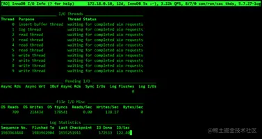 - InnoDB 查询队列、内部的查询数量,read view数量,主线程状态信息