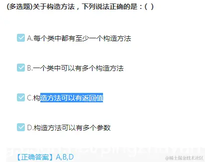 • 在构造方法里不含返回值的概念是不同于 “void” 的,在定义构造方法时加了 “void” ,结果这个方法就不再被自动调用了。