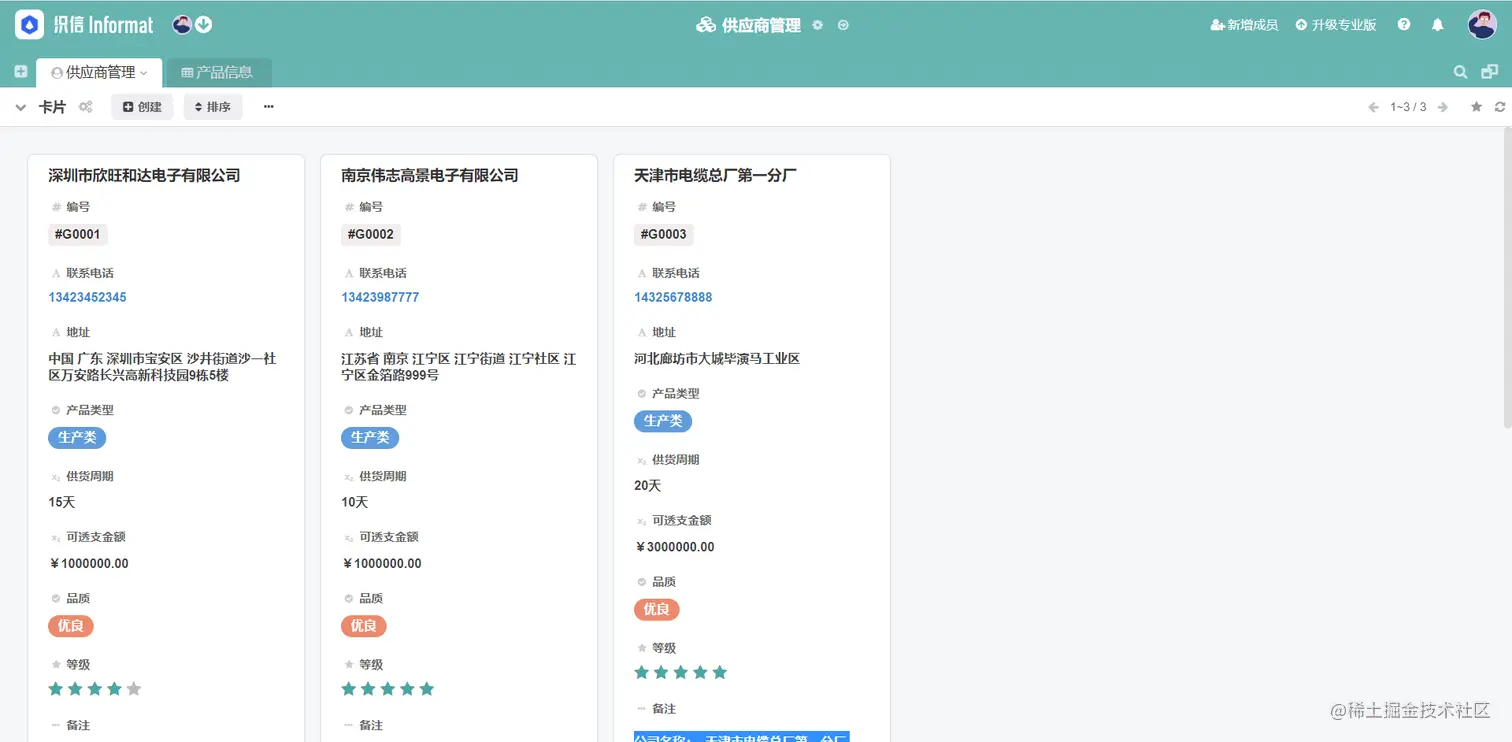 织信Informat是低代码开发平台,它的供应商管理系统作为超实用的管理系统,内置供应商管理、产品信息管理等强大的功能。而且还支持用户对功能模块进行自定义拓展或删除,支持电脑+手机双端使用。