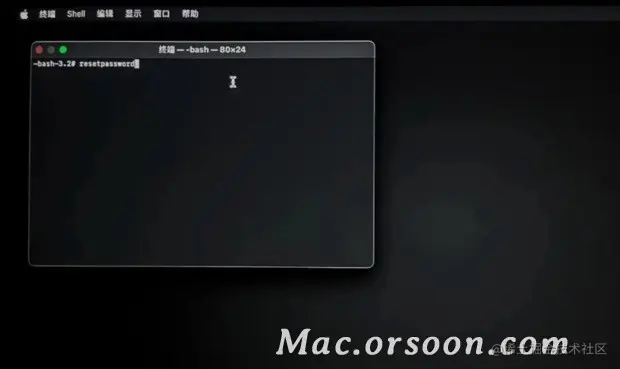 在顶部的实用工具中选择“终端”,输入“resetpassword”按回车。点按“重设密码”窗口以将它前置,然后从菜单栏中选取“恢复助理”,“抹掉 Mac”。完成后,Mac将会自动重新启动。