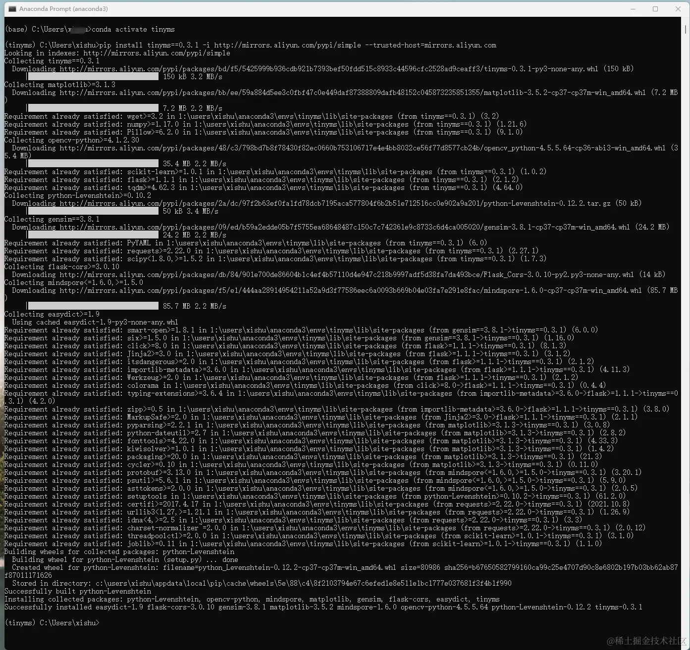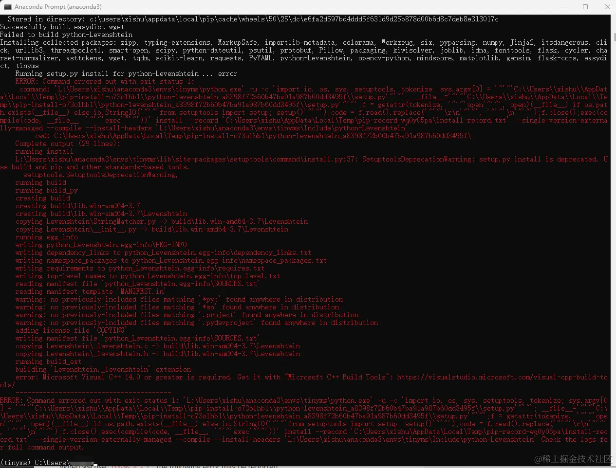 根据 tinyms.readthedocs.io/en/latest/q… 的方式安装: