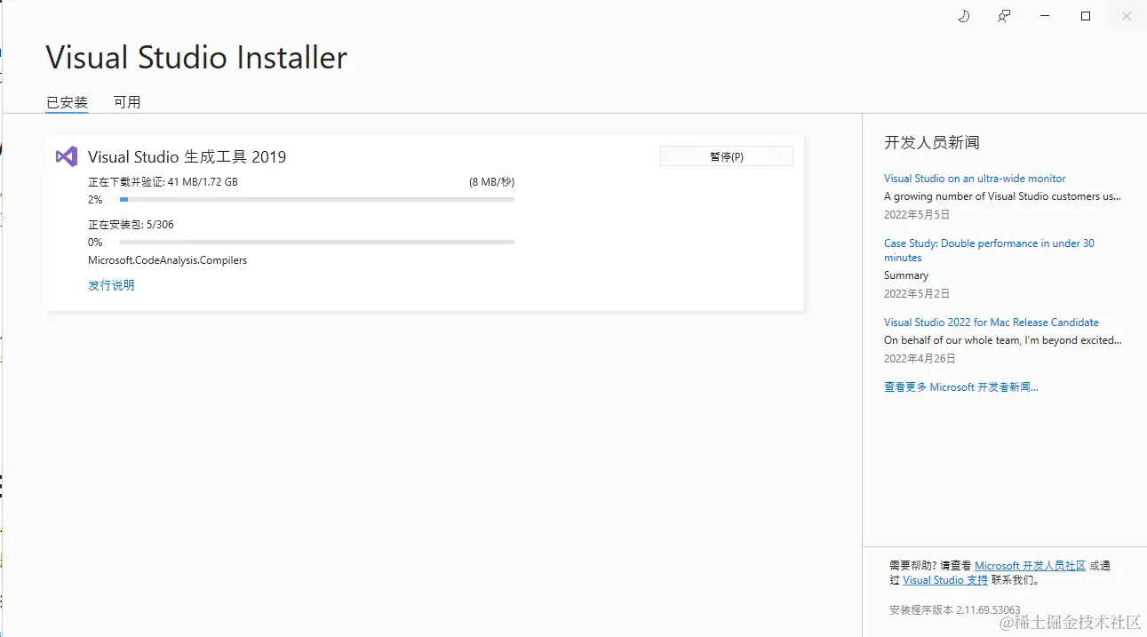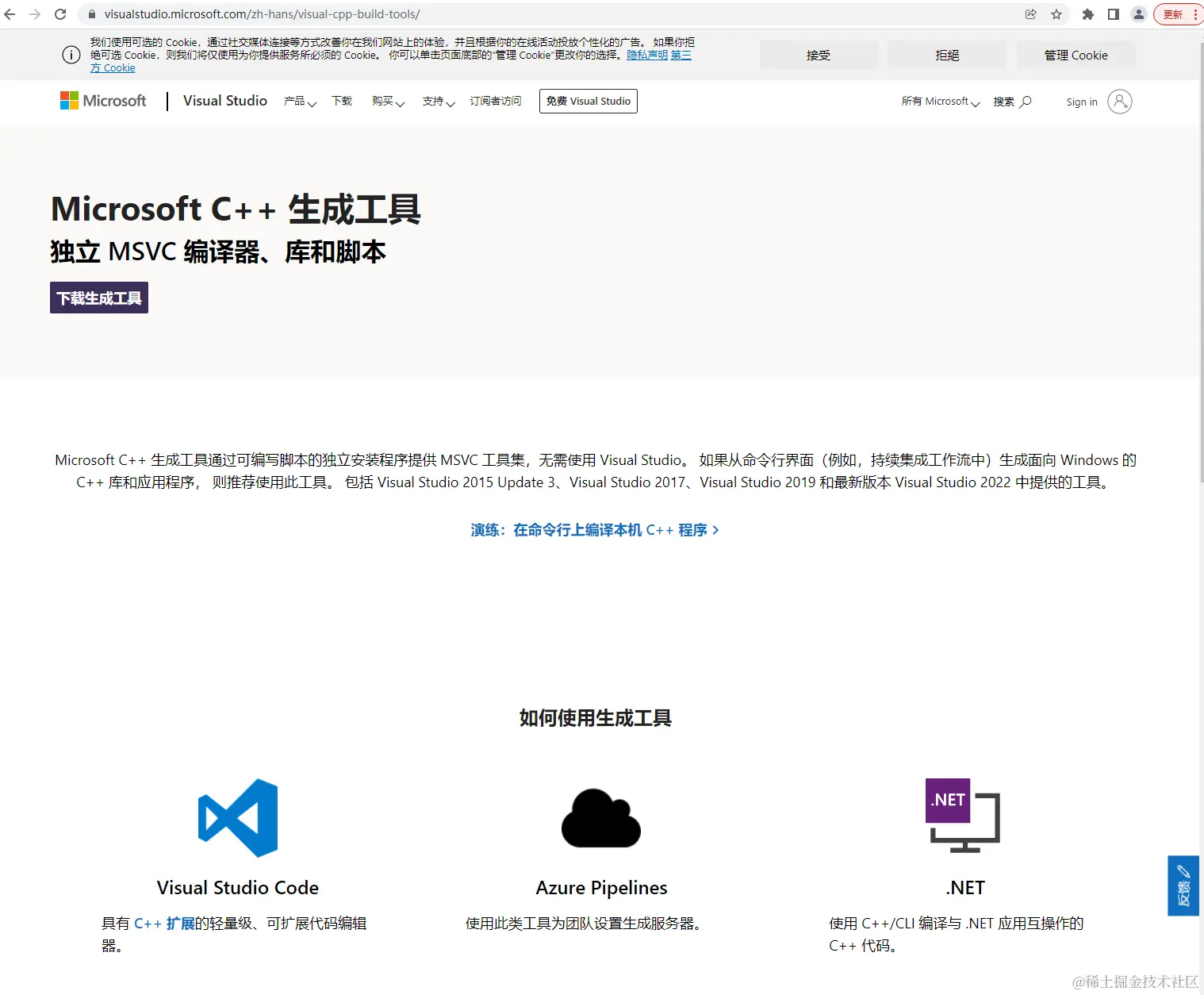 我们根据出错提示,打开 Microsoft C++ 生成工具 - Visual Studio