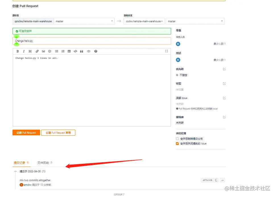 这个时候,在csckw也就是仓库拥有者的文件下提交审核。