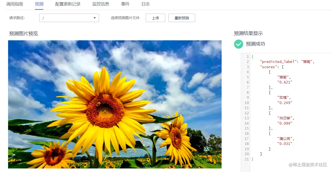 – 预测:单击“预测”页签,上传一个测试图片,进行预测。