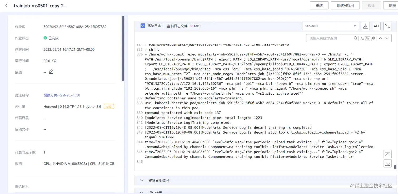 • 在“训练作业New”页面,“删除”运行结束的训练作业。