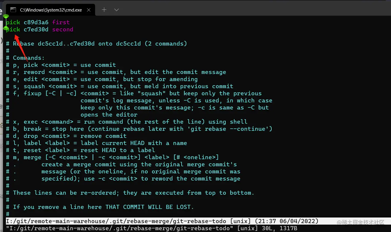 这个时候,我们可以看到有两个commit,需要合并为一个。