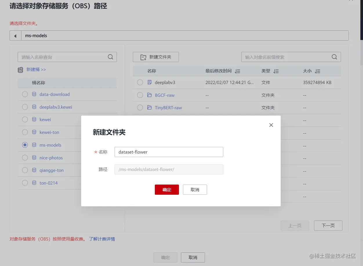 ⑧归档数据直读:关闭;其他参数默认(OBS桶名称需全局唯一,若出现以下提醒,自定义其他桶名称即可。需要记住此步骤中创建的桶名称,以便后续使用。)