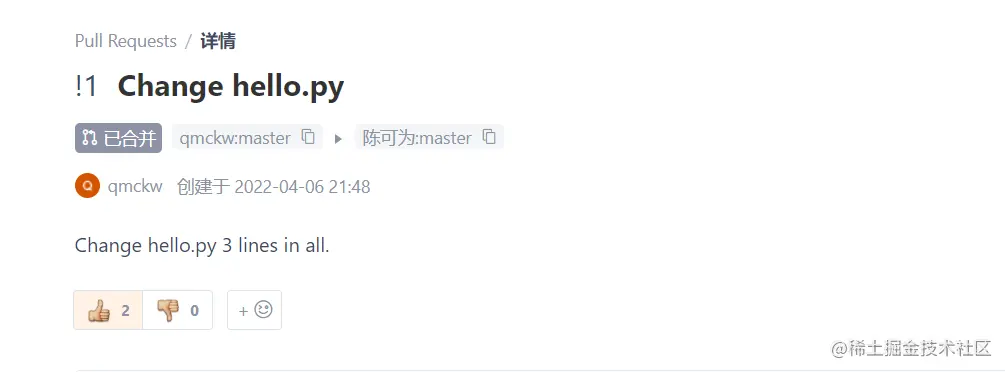 这个时候,代码已经上传到我们的远程主仓了。现在到我们自己的远程主仓界面,提交PR