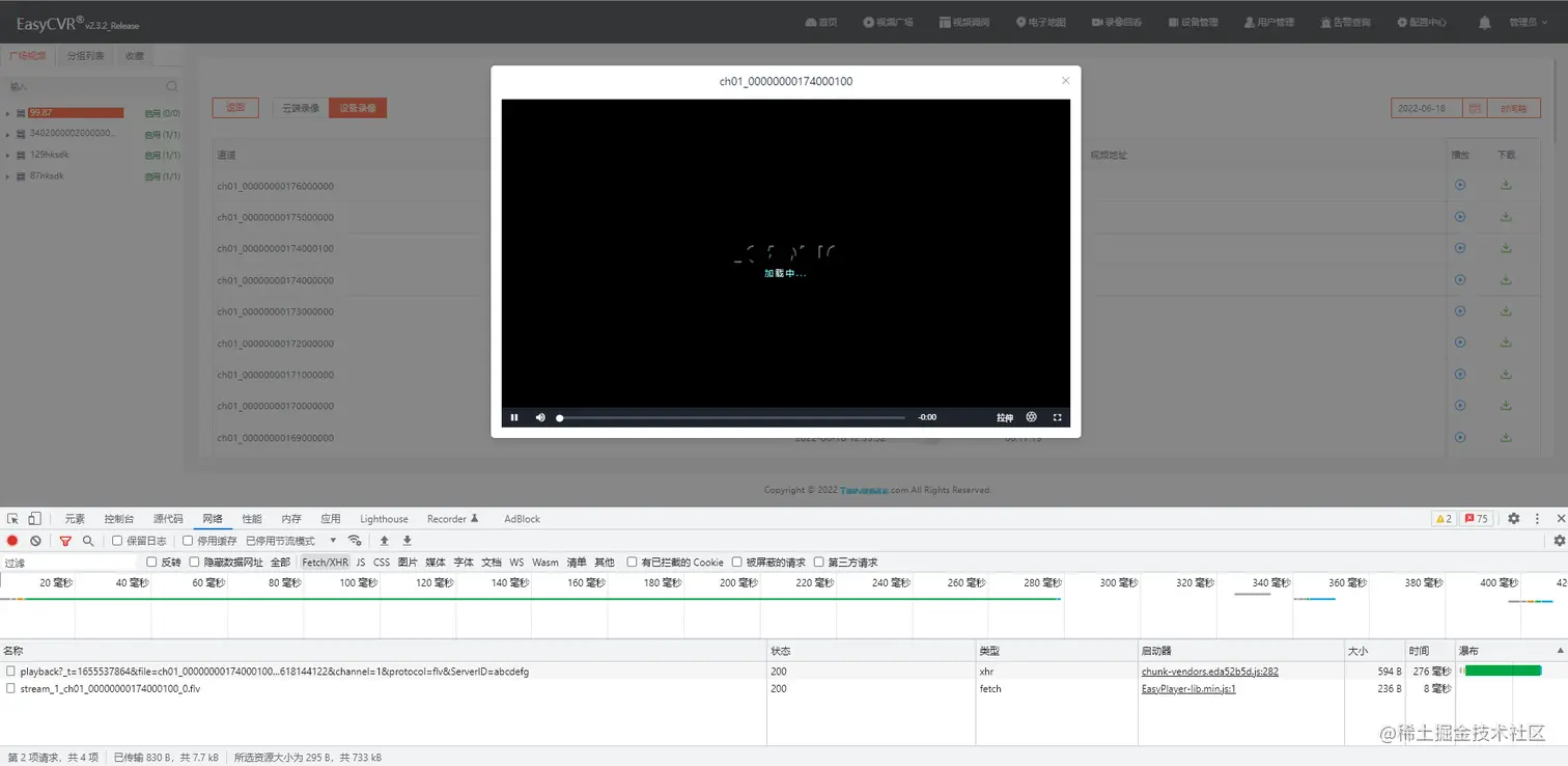 在排查过程中发现,前端播放设备录像时,将请求发送到后端,但是后端没有转发给设备,因此导致设备录像无法观看。