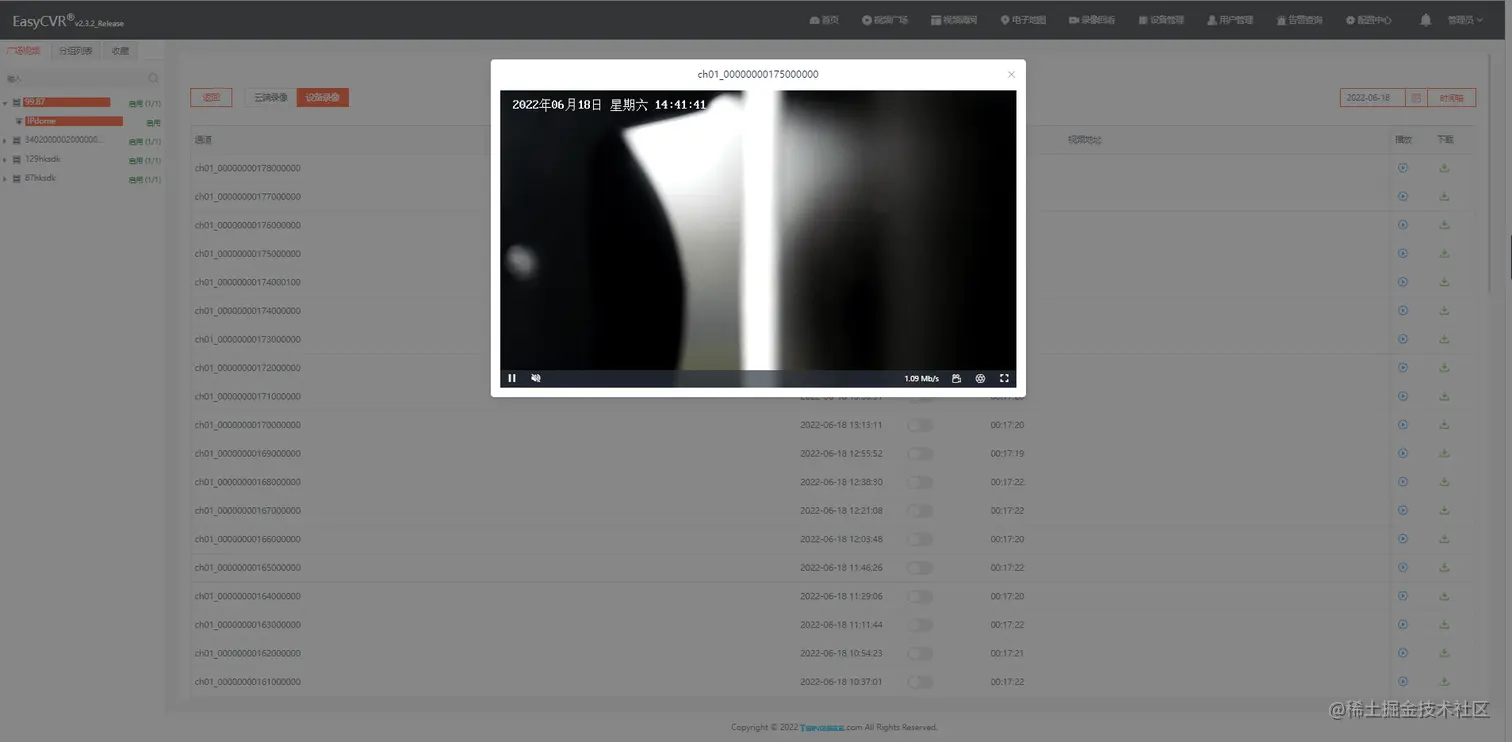 修改后,再次尝试播放,设备录像已经显示正常。