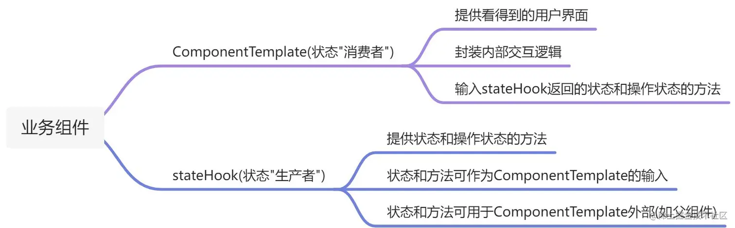 💡 如果将业务组件拆成ComponentTemplate和stateHook两部分,则可以按如下的思路进行拆分