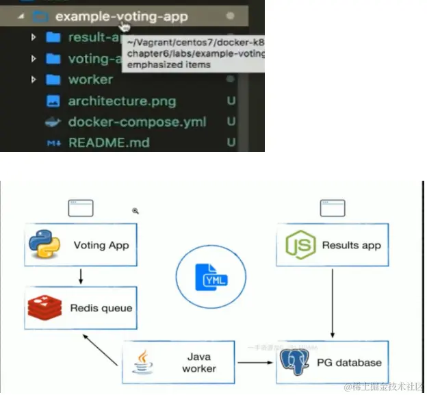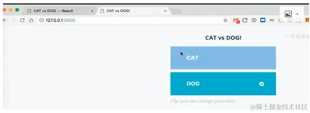 这里我们会部署一个复杂一些的应用,例如这里展示的就是是一个投票应用: