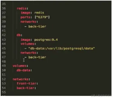 这里因为voting和result都是需要提供对外访问的,所以多了一个networks。另一个networks是内部同worker,db通信的-backtier。