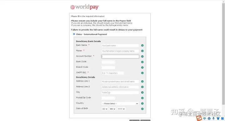 8)进入“wordpay”,填入收款账户的详细信息即可。