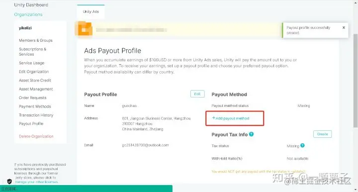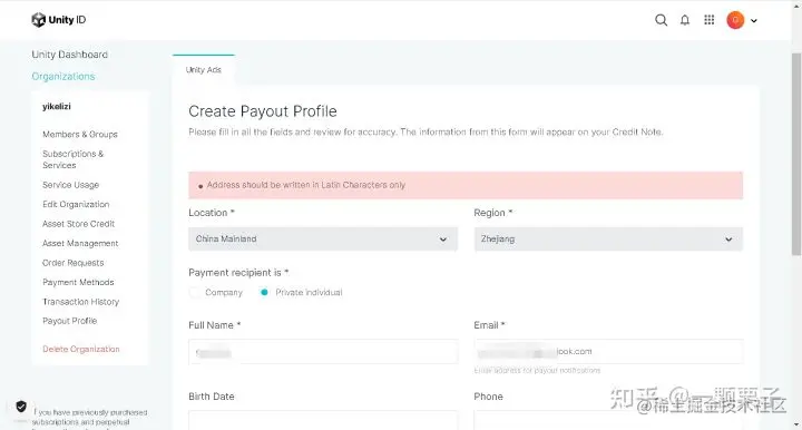 Unity Ads如何添加收款账户:(以银行转账下添加大陆收款账户为例)