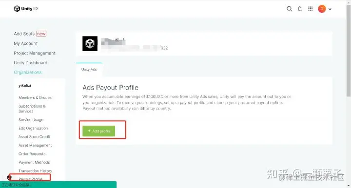 2)选择支付方式(Payout Profile),选择添加支付方式(Add Profile)