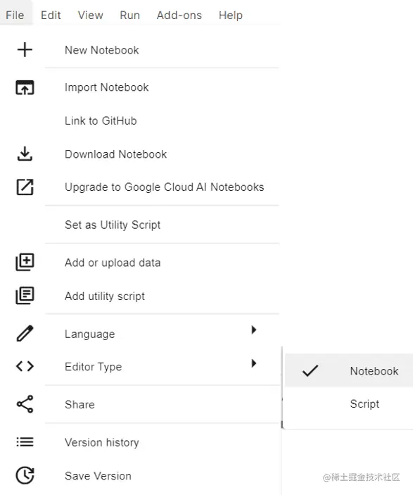 在Kaggle笔记本中改变编辑器类型