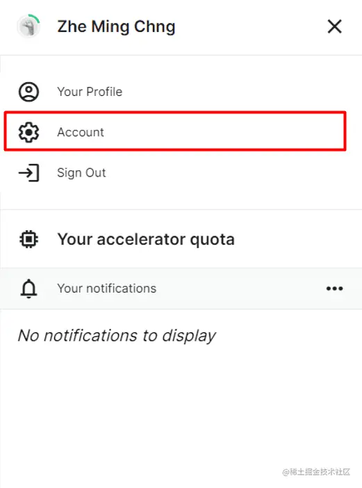 然后,你需要创建一个API令牌用于认证。进入Kaggle的网页,点击右上角的个人资料图标,进入账户。