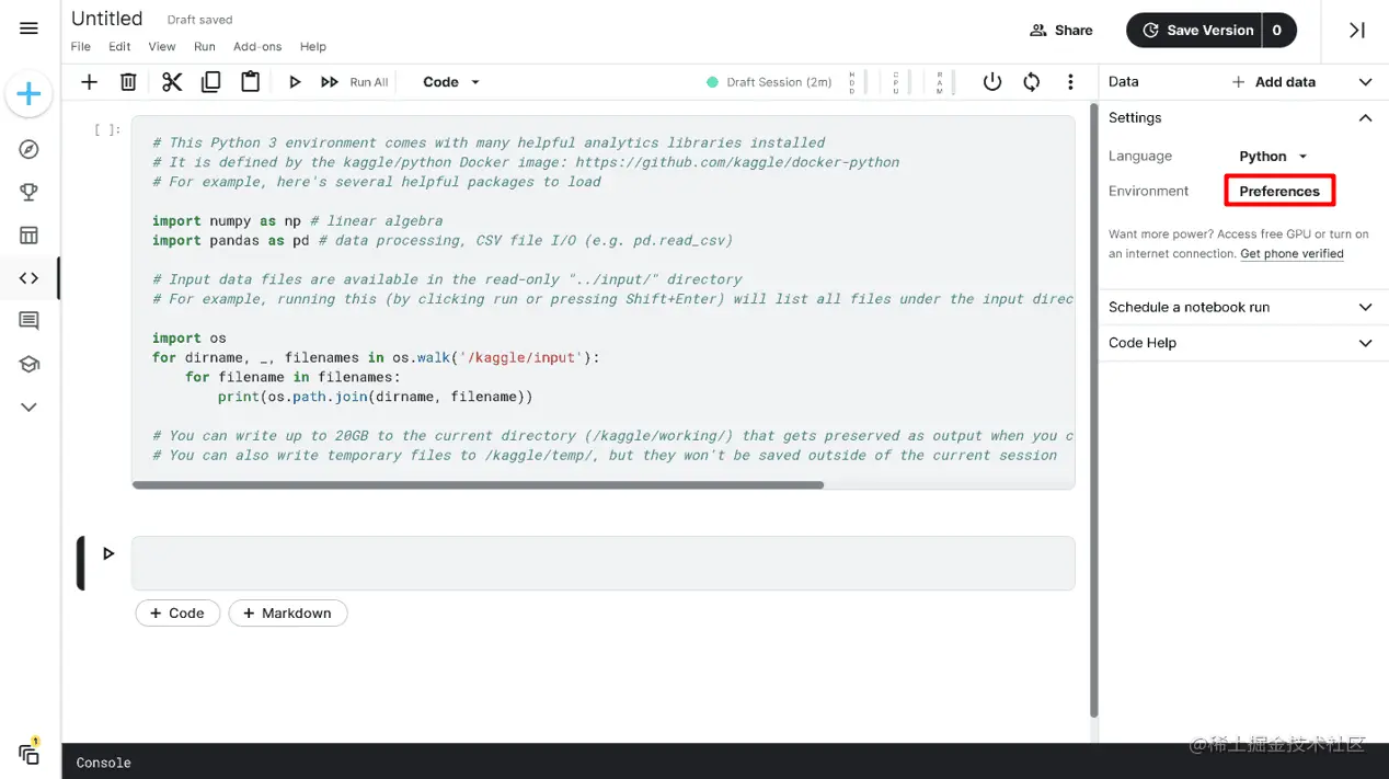 改变Kaggle笔记本环境首选项