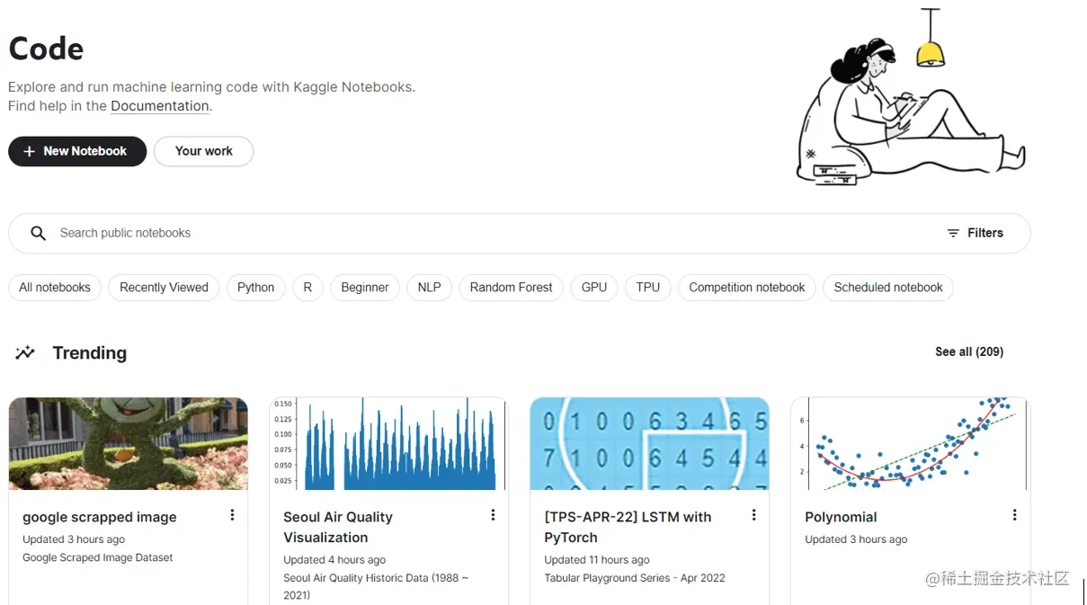你可能听说过Kaggle数据科学竞赛,但你是否知道Kaggle还有很多其他功能,可以帮助你完成下一个机器学习项目?对于为下一个机器学习项目寻找数据集的人来说,Kaggle允许你访问别人的公共数据集,并分享你自己的数据集。对于那些希望建立和训练自己的机器学习模型的人,Kaggle还提供了一个浏览器内的笔记本环境和一些免费的GPU时间。你也可以看看其他人的公共笔记本!