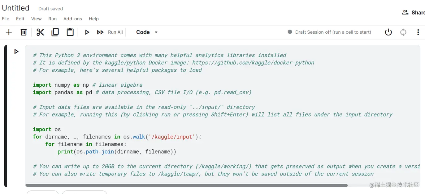 Kaggle代码页