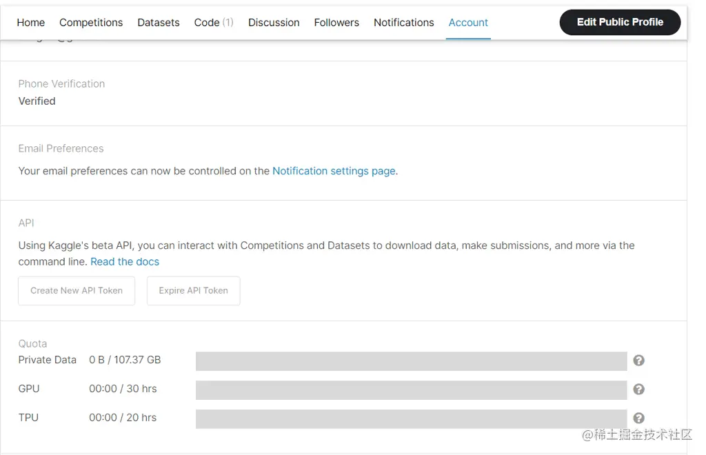 为Kaggle公共API生成新的API令牌